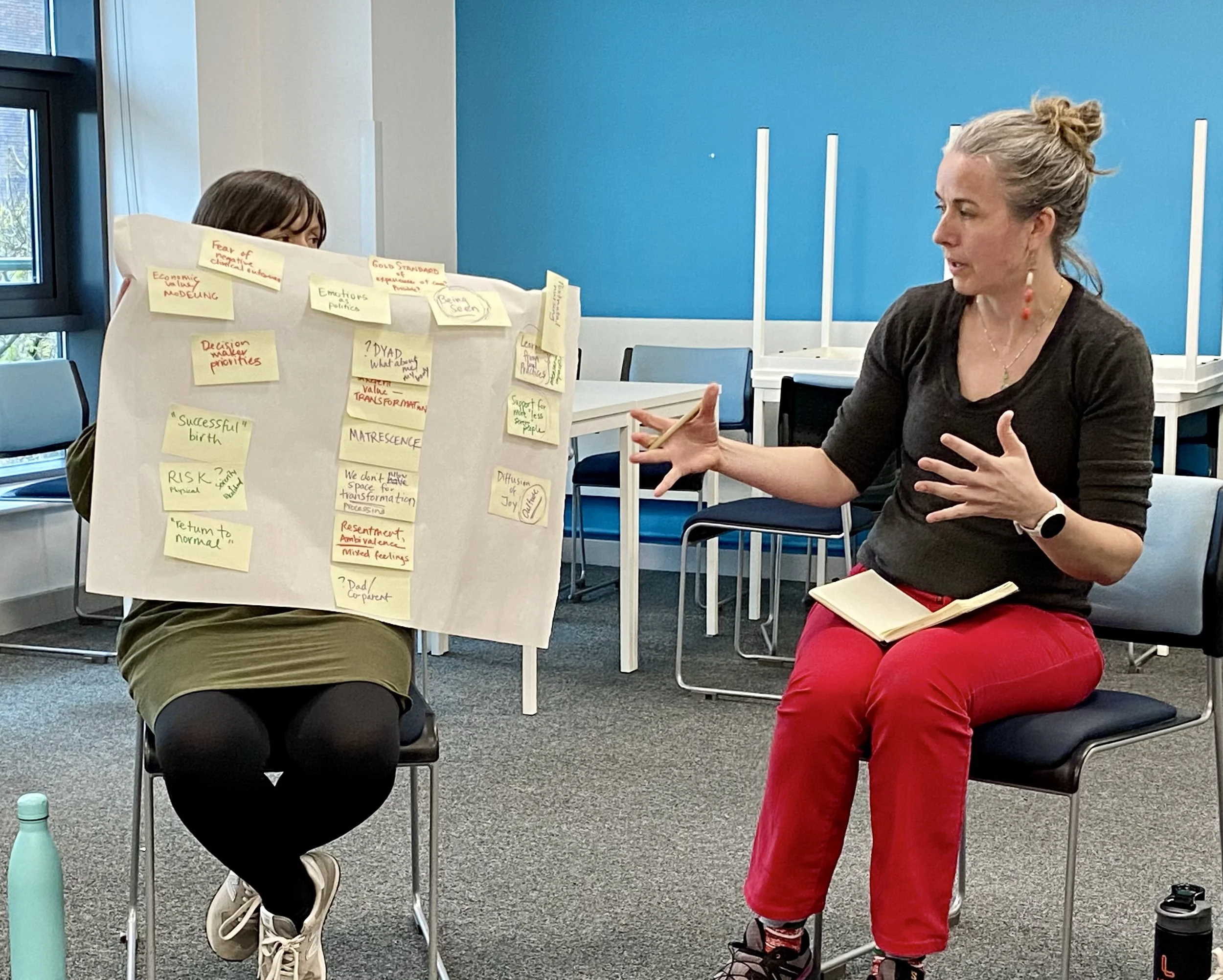 In this values-led exploration of the intersection of research and implementation, participants considered alternative measures for birth outcomes. How might the field of health economics value maternity and birth beyond deficit-based morbidity and mortality? What if we were to also measure transformation, joy, and pleasure? We told stories, imagined new narratives, and designed pathways towards this possible future.